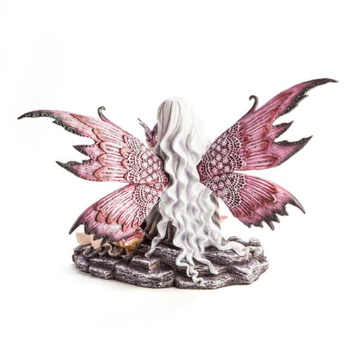 Fairy In Flower Rock Pond With Tiny Dragon