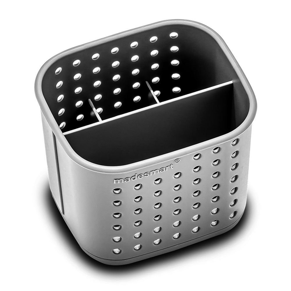 The Madesmart Pocket Sink Station keeps dish washing tools tidy and contained. Divided interior compartments provide a space for sponges, scrubbers, and dish wands, while ventilation holes promote faster drying for improved sanitation. The detachable drainage base allows for easy cleaning, and soft-grip material protects countertops while keeping the station in place.