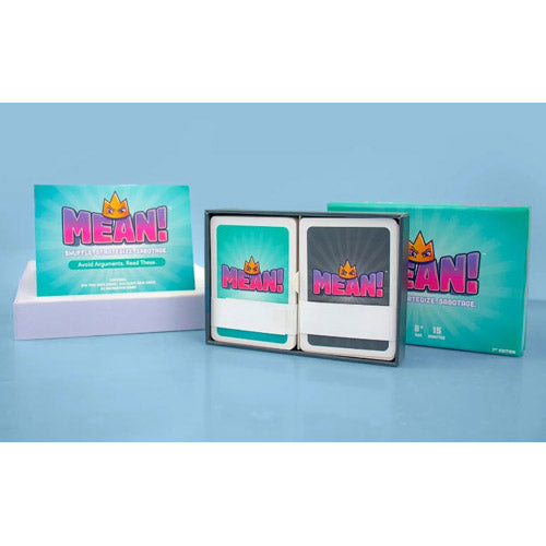An epic showdown of sly moves, MEAN! introduces an all new style of clear-your-hand gameplay driven by "Card Direction", where cards are played either going up or going down in value. You can use special cards to change the direction to block your rivals, force strategic hand swaps or wield the mighty MEAN! card to punish your frenemies and take them down.