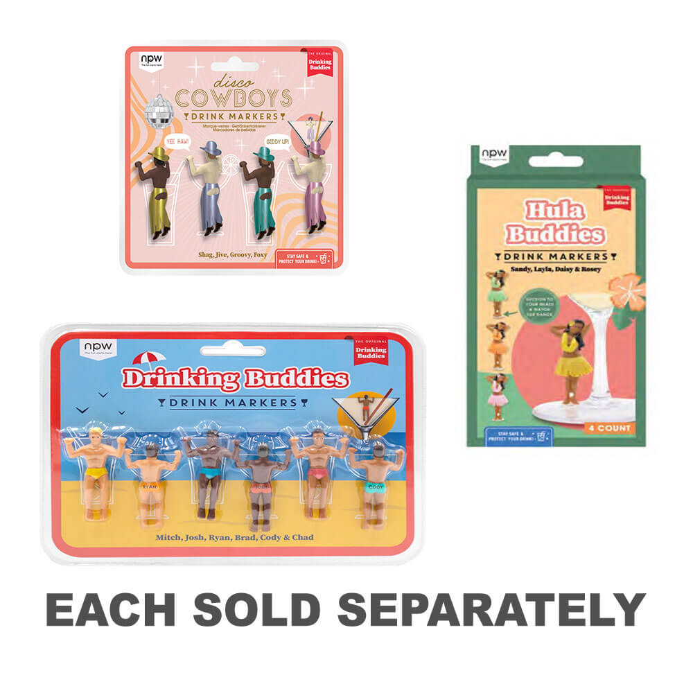 - Everyone needs a drinking buddy, especially one who looks great in a speedo! Hang a hunk on the side of your glass to mark your drink and avoid mix ups. Essential for bachelorette parties, girls' nights, picnics or anytime the drinks are flowing!