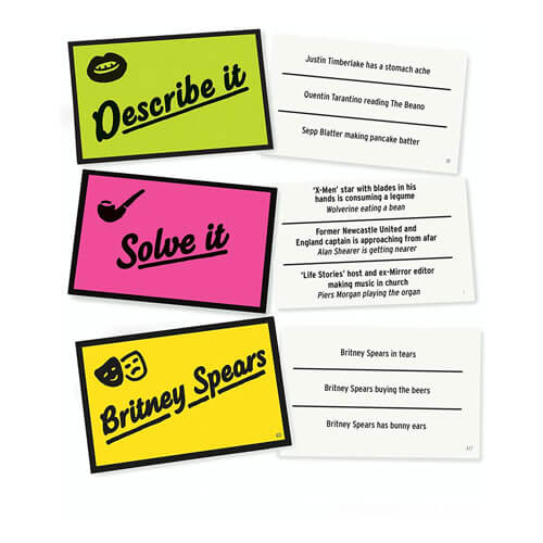 Players must try their best to describe rhymes to their team by either acting them out, reading a riddle, or attempting to explain them in their own words with your team shouting out as many as they can in 30 seconds time.