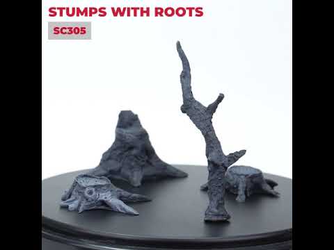 - Four dry tree stumps of a variety of European trees, with detailed bark texture and interior. Ideal to place on dioramas, choosing the tones to depict wet or dry environments, even adding tufts or moss from Vallejo Scenery references.