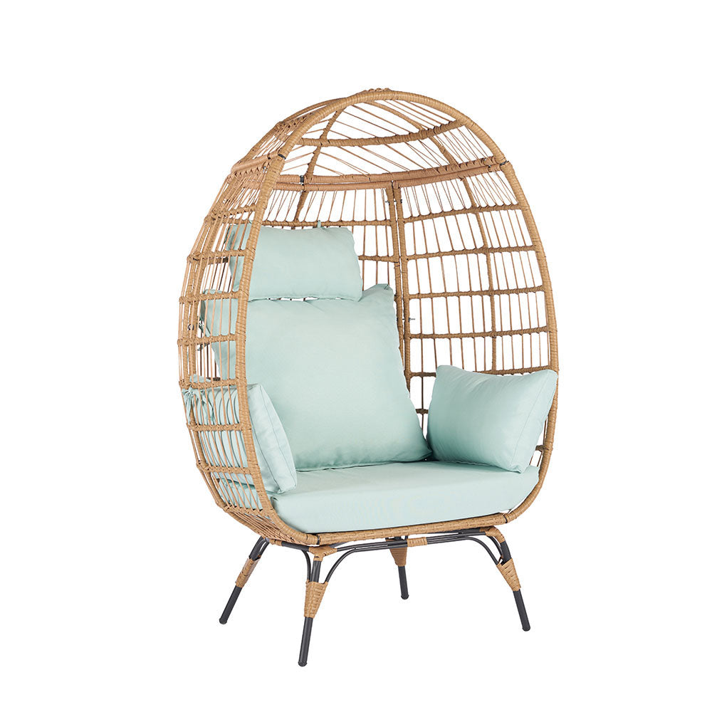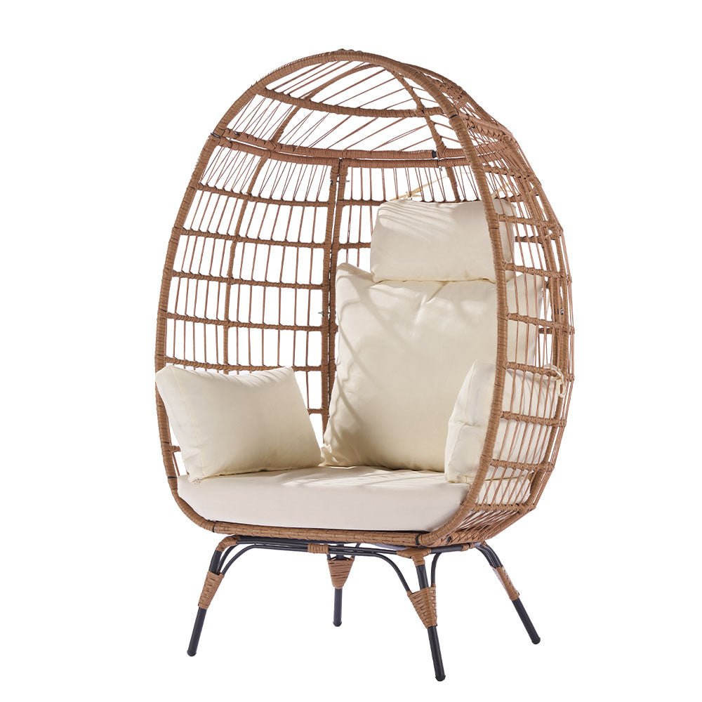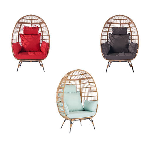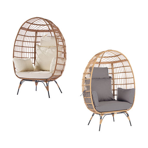 Crafted from high-quality wicker, it offers durability and weather resistance, making it suitable for all seasons.The chair comes complete with cozy cushions that provide optimal comfort and support. Sink into the plush cushions as you unwind and enjoy your surroundings. The ergonomic design of the chair cradles your body, allowing you to fully relax and rejuvenate.With its unique egg shape, this chair adds a touch of elegance and sophistication to any outdoor space. Whether you're reading a book, sipping your morning coffee, or simply soaking up the sun, our Wicker Egg Chair creates a cozy and inviting atmosphere.Easy to assemble and maintain, this chair is designed for your convenience. The sturdy frame ensures stability and longevity, while the wicker material is easy to clean with just a damp cloth. Spend more time enjoying your outdoor oasis and less time on maintenance.