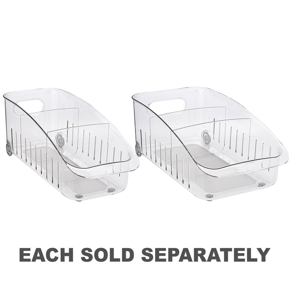 Organise the taller and bulkier items in your fridge with the RollOut Fridge Drawer from YouCopia. Featuring adjustable dividers to better organise your fridge contents, retrieve items from further back with ease by utilising the drawer's smooth wheels and sturdy handles, allowing you to pull items forward without disturbing everything in the drawer.